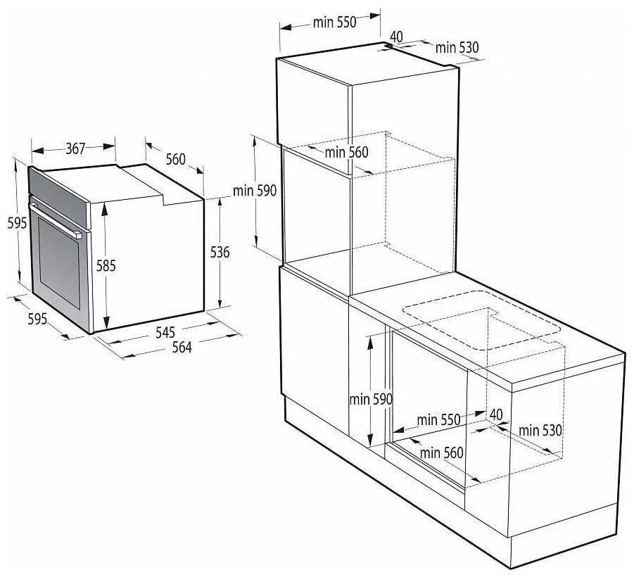 Размеры встраивания (ВхШхГ) (мм): 590x560x550