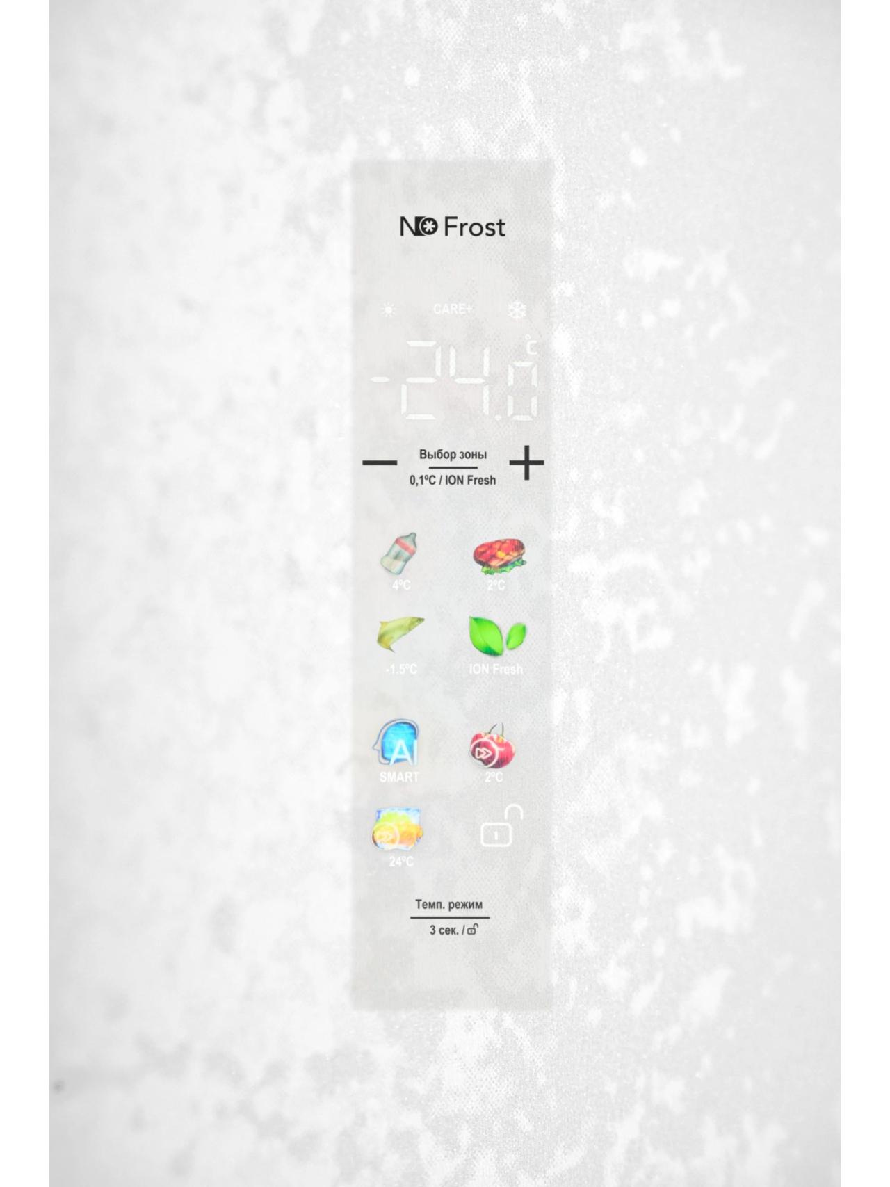 Режим SMART сохраняет свежесть продуктов, используя оптимальные показатели для эффективного энергопотребления: 5°С – в холодильном отделении, -18°С – в морозильной камере и 4°С – в зоне с настраиваемой температурой CARE+SPACE.