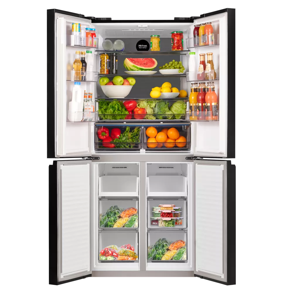 Холодильник Cross Door NO FROST с инвертором MAUNFELD MFF183NFBE создан для тех, кто ценит простор и удобство управления. Формат Cross Door с четырьмя дверцами упрощает доступ к полкам и ящикам, а продуманная организация отделений помогает поддерживать порядок.