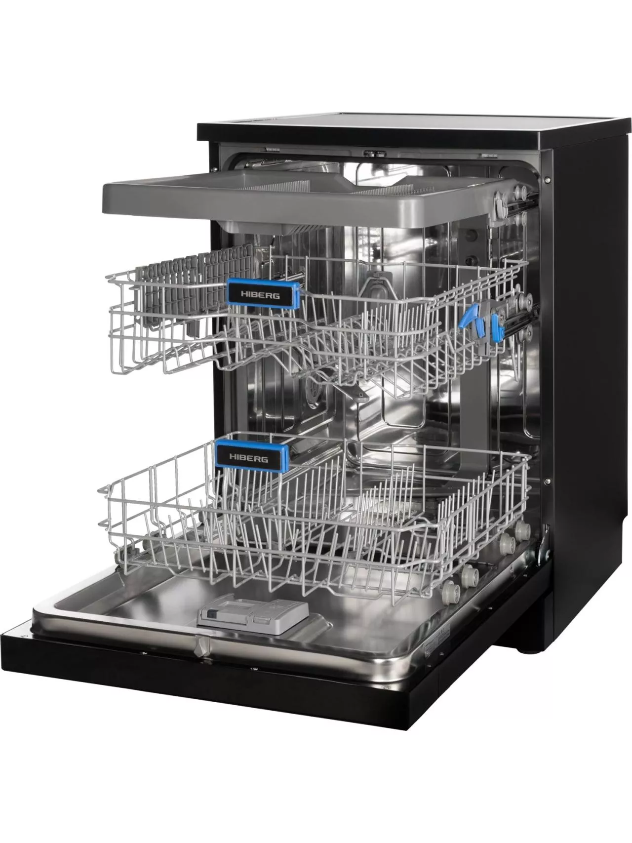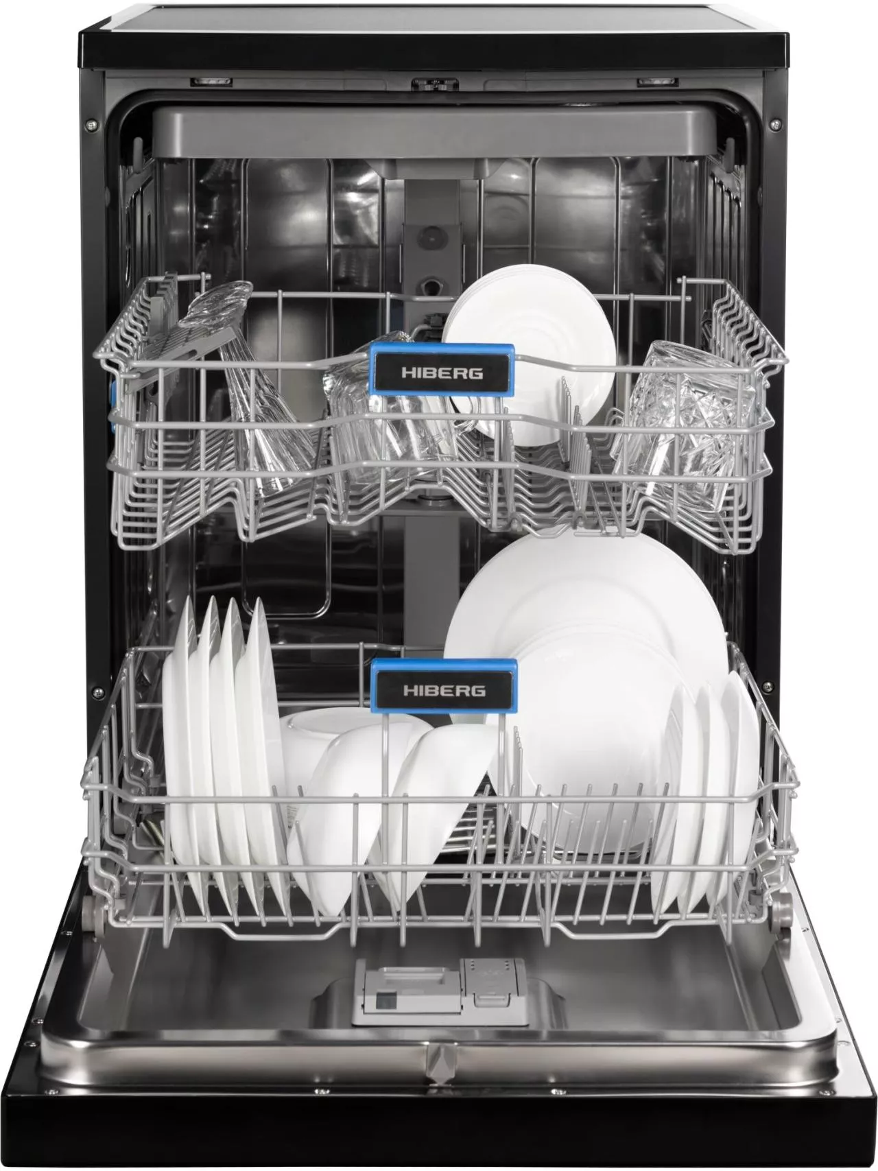 Для комфорта предусмотрены выбор зоны мытья (в одной корзине), таймер отсрочки, цветная сенсорная панель с большим дисплеем. Премиальный дизайн подчеркнут стильными кожаными вставками и единой стилистикой со стиральной машиной HIBERG I-DDQ10-814 B. За безопасность отвечают полная защита от протечек AquaStop и блокировка от детей. Гарантия — 2 года.