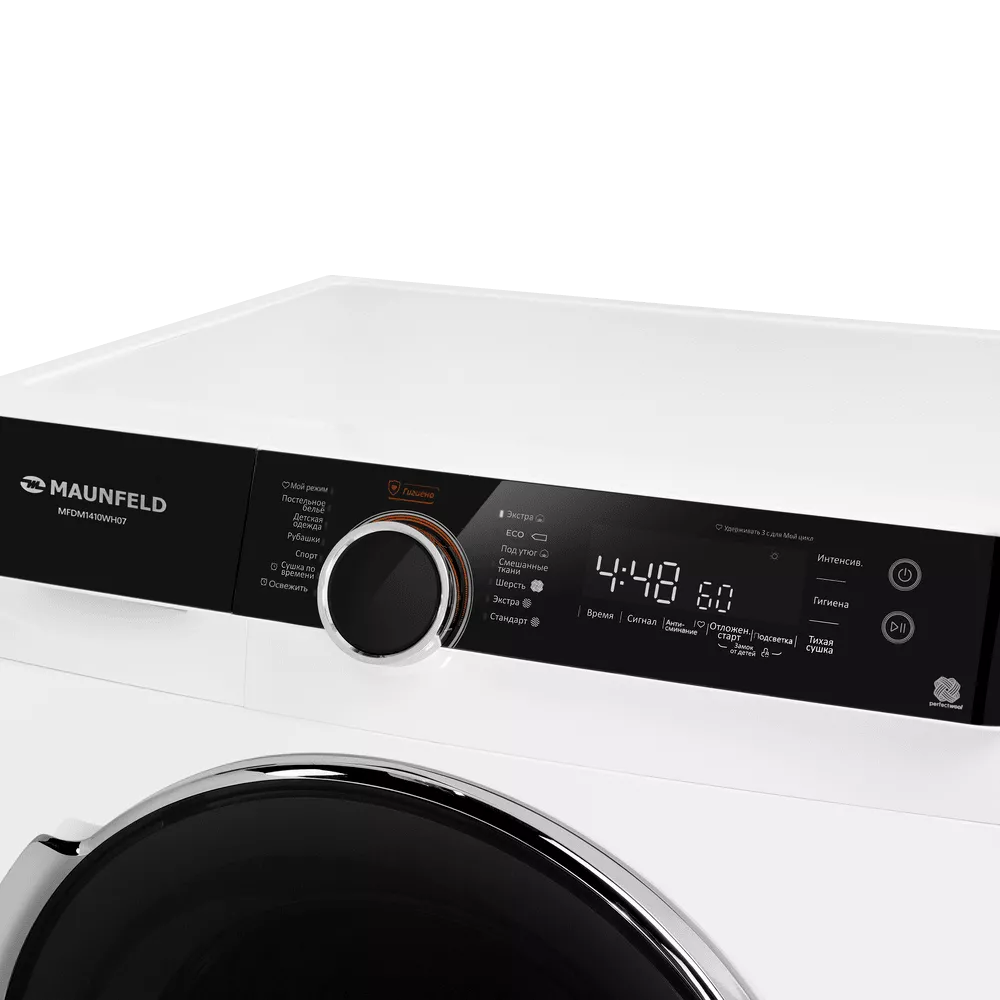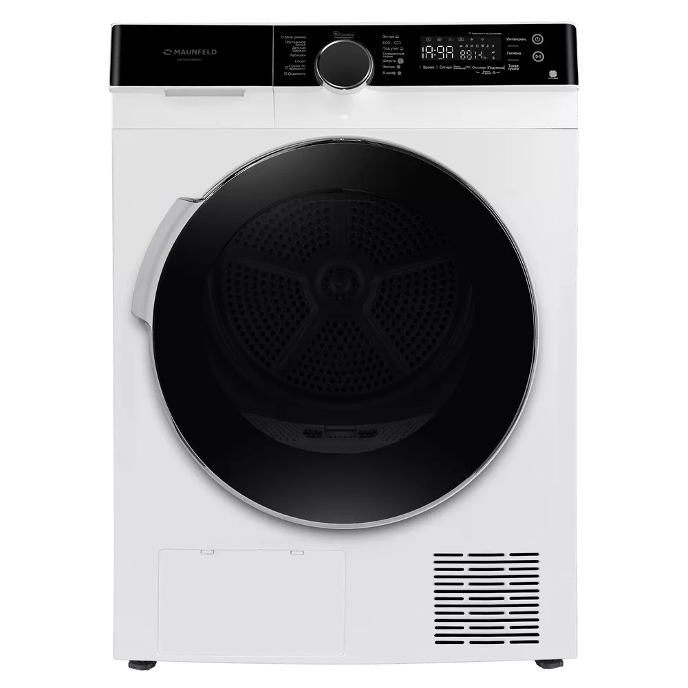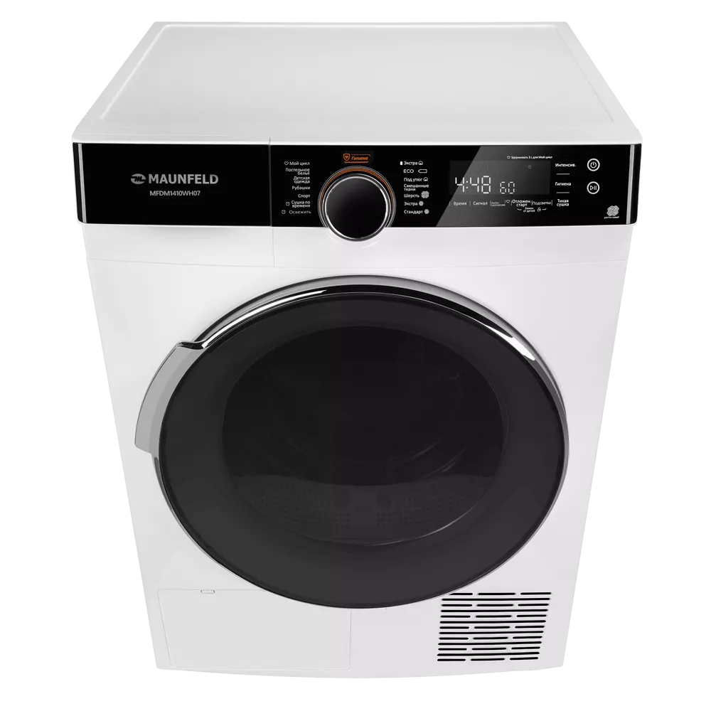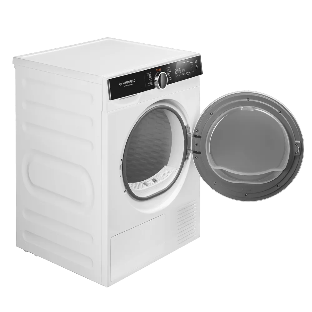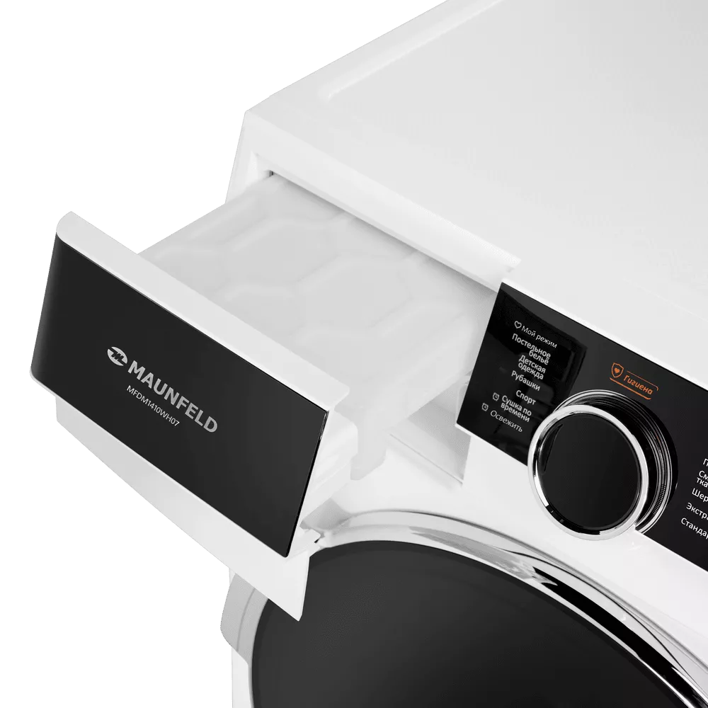 Сушильная машина с инвертором и тепловым насосом MAUNFELD MFDM1410WH07 создана для бережной и эффективной сушки большого объёма белья. Технология Heat Pump направляет тёплый сухой воздух в камеру, мягко удаляя влагу из тканей и возвращая его через испаритель без необходимости дополнительного вентиляционного канала. Съёмный резервуар для конденсата позволяет разместить технику там, где вам удобно, без привязки к стационарному сливу.