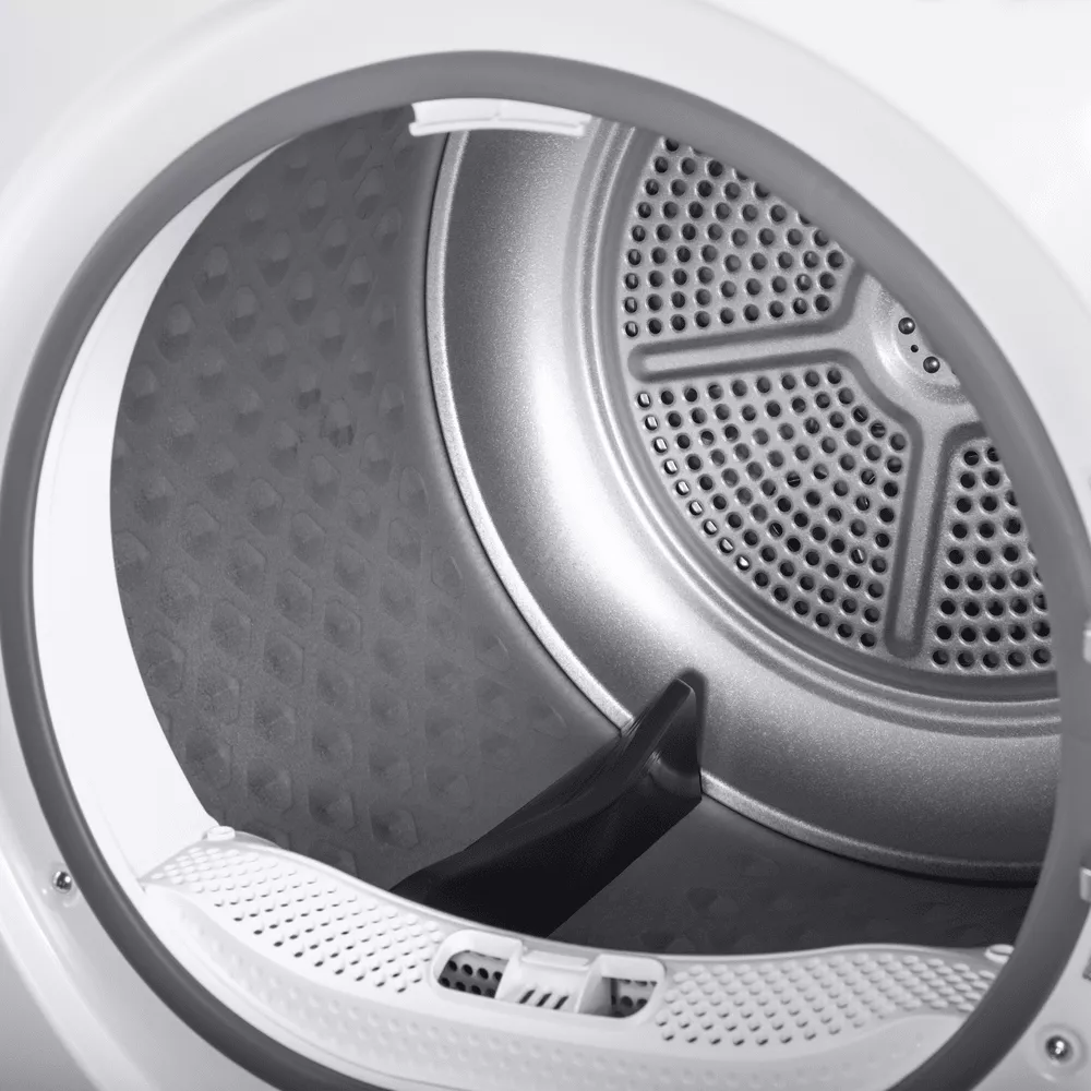 Для семьи и больших загрузок особенно важна загрузка 10 кг: широкая дверца (открытие на 180°) и люк диаметром 375 мм делают погрузку и выгрузку максимально удобными. Каплевидные ячейки барабана, ребра-активаторы и стальная чаша обеспечивают бережный уход за тканями, предотвращая лишнее трение, скручивания и повреждения.