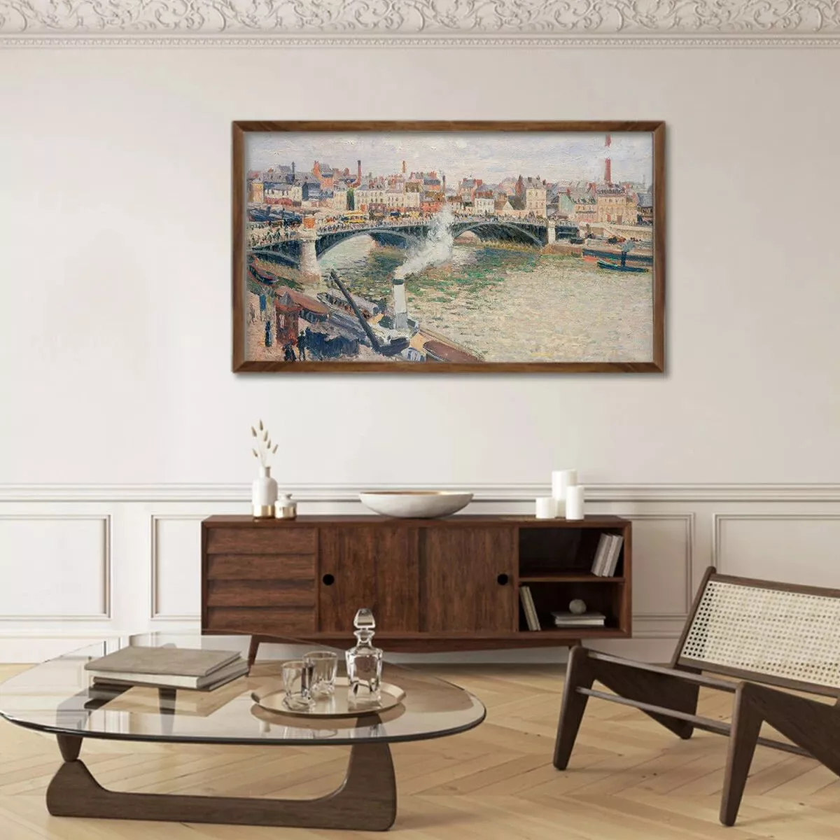 Телевизор SKYWORTH Frame 55LN70G от бренда SKYWORTH превращает экран в элемент декора: тонкий корпус с креплением вплотную к стене и аккуратная рамка создают эффект картины. Когда вы не смотрите ТВ, активируйте Art Mode (Цифровая Галерея) — на экране появятся шедевры живописи, фотографии природы, часы или ваши собственные снимки.