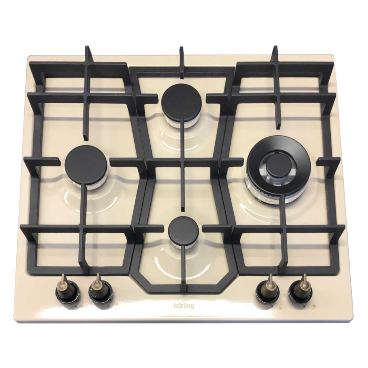 Варочная панель Korting HG 631 CTRB — модель в стиле ретро с ромбовидным расположением конфорок. Эмаль имеет оттенок «слоновой кости», который красиво сочетается с черными чугунными решетками для посуды и бронзовыми переключателями. Электроподжиг и газ-контроль делают использование удобным и безопасным.