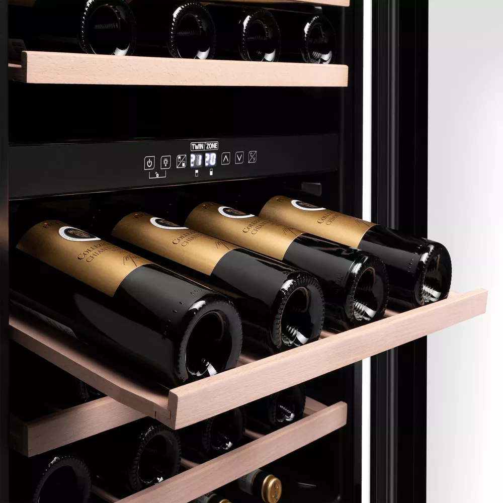 Модель вмещает до 77 бутылок и поддерживает широкий температурный диапазон от 5 °C до 22 °C. Это позволяет хранить красные, белые и игристые вина в оптимальных условиях, обеспечивая их правильное созревание и сохранение вкуса.