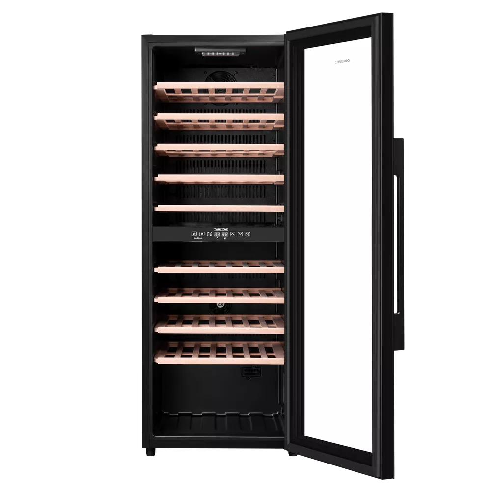 Современный винный шкаф MFWC-201D77 – это инновационное решение для правильного хранения вина. Он сочетает в себе расширенную функциональность, изысканный дизайн и полноценную имитацию условий винного погреба.