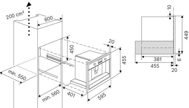 Габариты ниши для встраивания (Ш×В×Г): 45 × 56 × 55 см