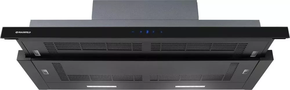 Особенностью данной модели является наличие выдвижной панели, что увеличивает эффективность работы и облегчает управление устройством. Управление осуществляется с помощью сенсорных переключателей. При этом доступно 4 скорости работы, что позволяет подбирать оптимальный режим в зависимости от интенсивности приготовления пищи.